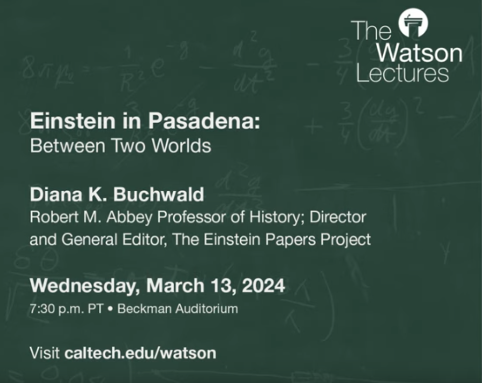 Watson Lecture: Diana K. Buchwald Reveals Details from Albert Einstein's Time at Caltech - 03/13/2024