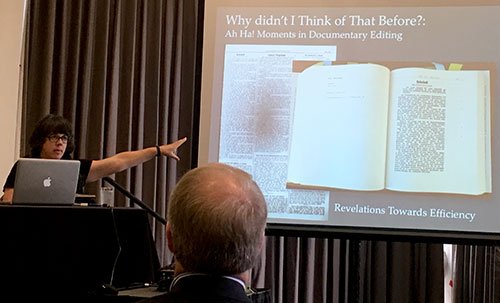 I had the pleasure of being invited by EPP Executive Committee Member, Professor Barbara Oberg, to participate on a panel at the Association for Documentary Editing (ADE) Conference, hosted in Olympia, Washington in late June. Professor Oberg credits her colleague, J. Jefferson Looney, current ADE President and Jefferson scholar, with the panel concept: Why didn't I Think of That Before?: Ah Ha! Moments in Documentary Editing; Oberg assembled a robust group of panelists for the final presentation of the conference. I was honored to participate.